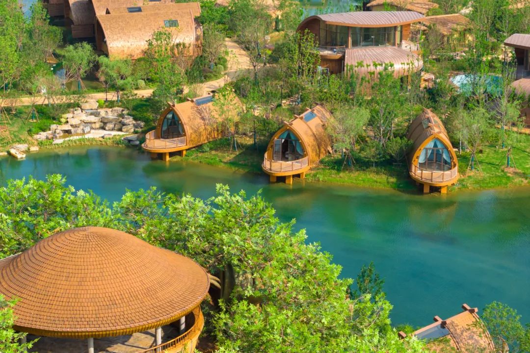酒店拥有585间特色客房,包括495间湖景酒店客房和90间度假木屋房。其中,全国首座人造榕树树屋成为网红打卡点,度假木屋区中,树屋“藏”在密林间,船屋则“漂”在水面上,为亲子家庭提供梦幻般的度假体验,特色房型广受市场追捧,节假日一房难求。