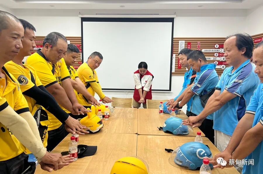8月15日,蔡甸区蔡甸街道新福社区联合区红十字会在社区驿站开展共建活动,为外卖骑手等新就业群体开展应急救护知识培训。