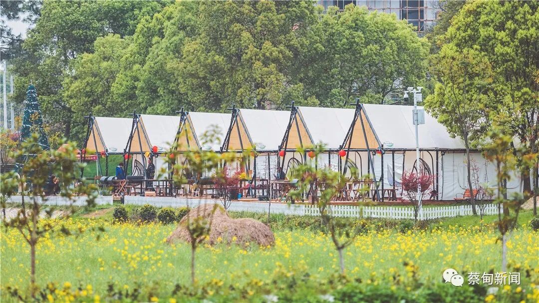 晨光初现,蔡甸区永安街道十里莲华养心谷内的草坪上早早地支起了帐篷,慕名而来的游客享受着惬意的乡村时光。