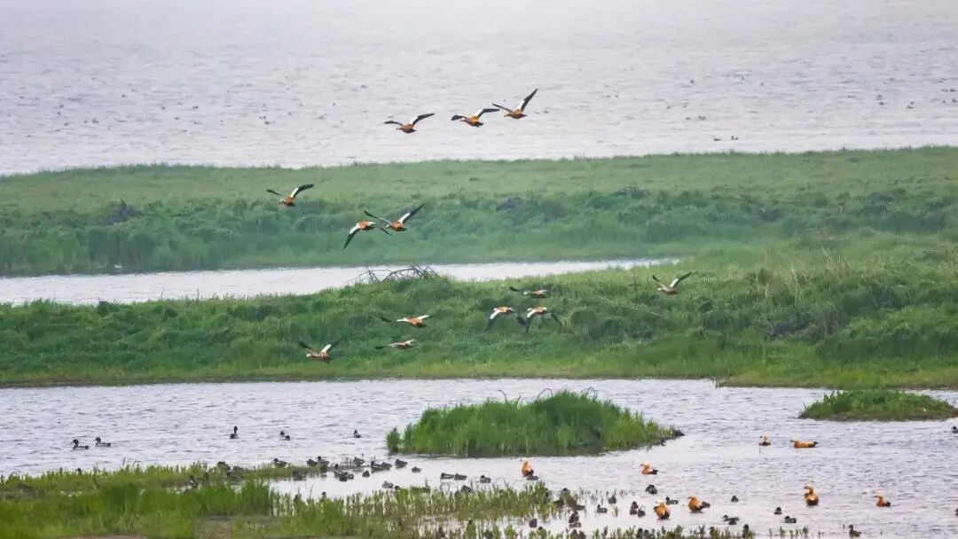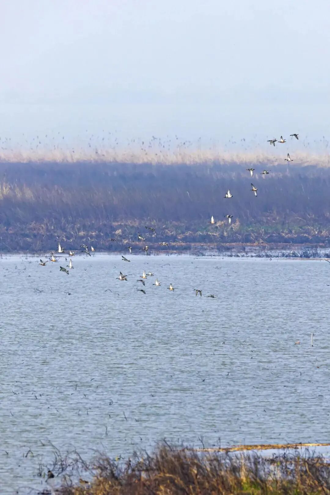 优质的生态环境与丰富的水生物种,吸引了数以万计的候鸟于此栖息,不乏青头潜鸭、黑鹳、东方白鹳等珍稀鸟类。