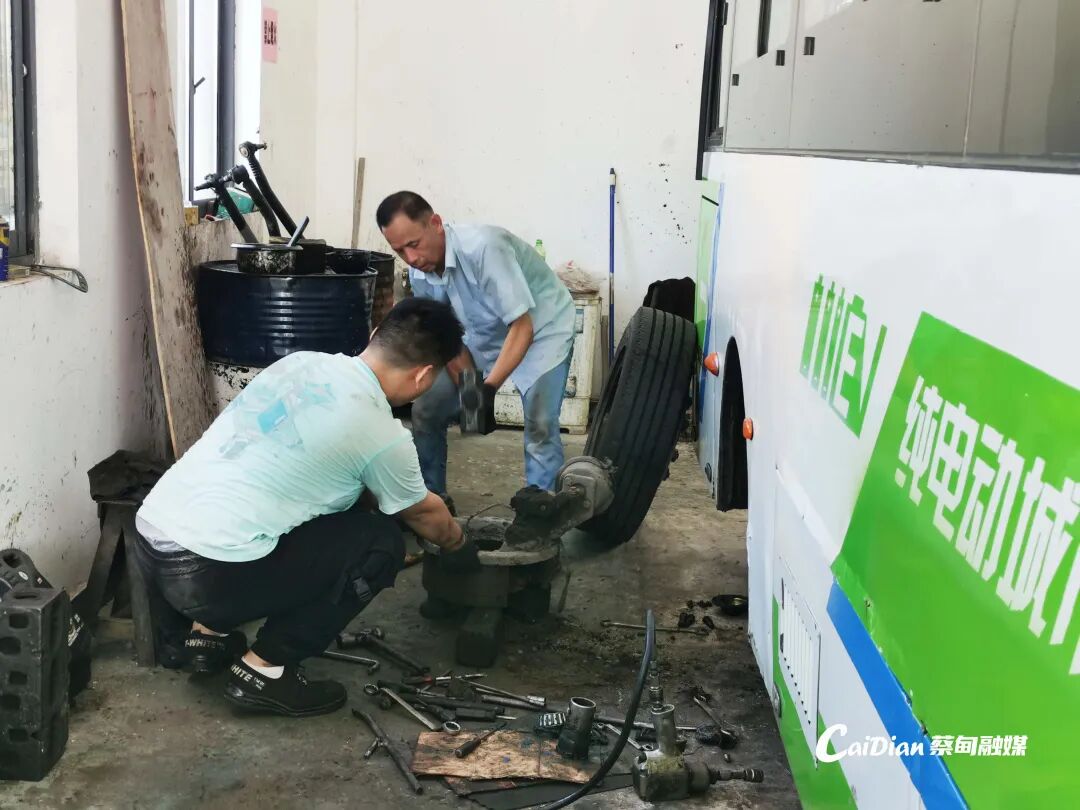 蔡城公交共有74台新能源公交车,这些车辆的维修和保养任务繁重。为了保障高温天气下的公交出行安全,3名维修师傅轮班工作,确保能够及时检查和修复车辆。他们每天从早上8点一直忙到下午5点,甚至更晚,经常需要连续工作数小时,才能完成一辆车的维修保养任务,但从未有过怨言。
