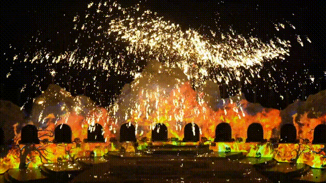 夜幕降临后的花博汇更是别有一番风味。每晚6时,电音舞台上都会上演火秀盛宴,非遗火中幡、火壶、戏曲火焰大刀等火秀特技精彩绝伦,引得现场观众掌声雷动。晚上7:30,由大唐不夜城《长安十二时辰》原创团队匠心打造的大型实景火秀《繁花盛焰》更是震撼人心,让在场的每一位游客大饱眼福,赞叹不已。