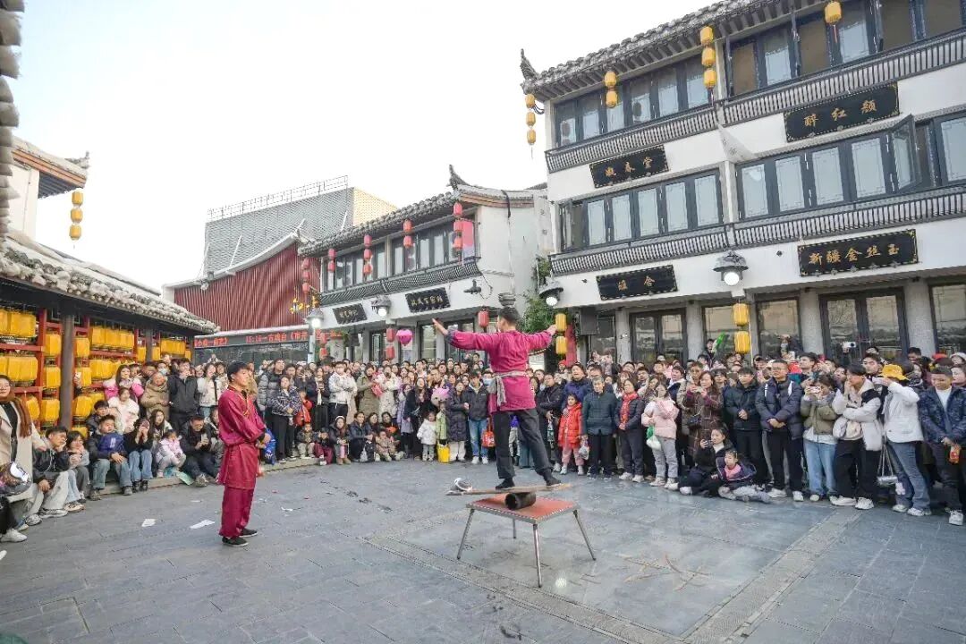 园区精心筹备了百余场精彩绝伦的节目,成为吸引游客的又一大亮点。从古风话剧《不折风骨》与《绝弦记》的深厚文化底蕴,到市井百艺杂技表演的惊险刺激,再到儿童剧《花仙子的梦幻之旅》的纯真童趣,各类演出轮番上演,精彩纷呈。
