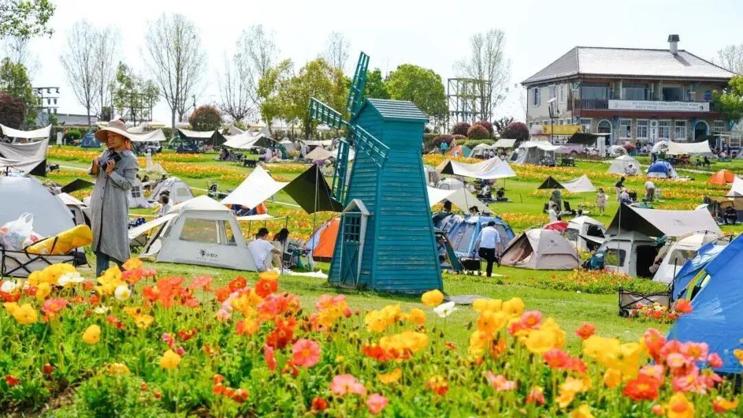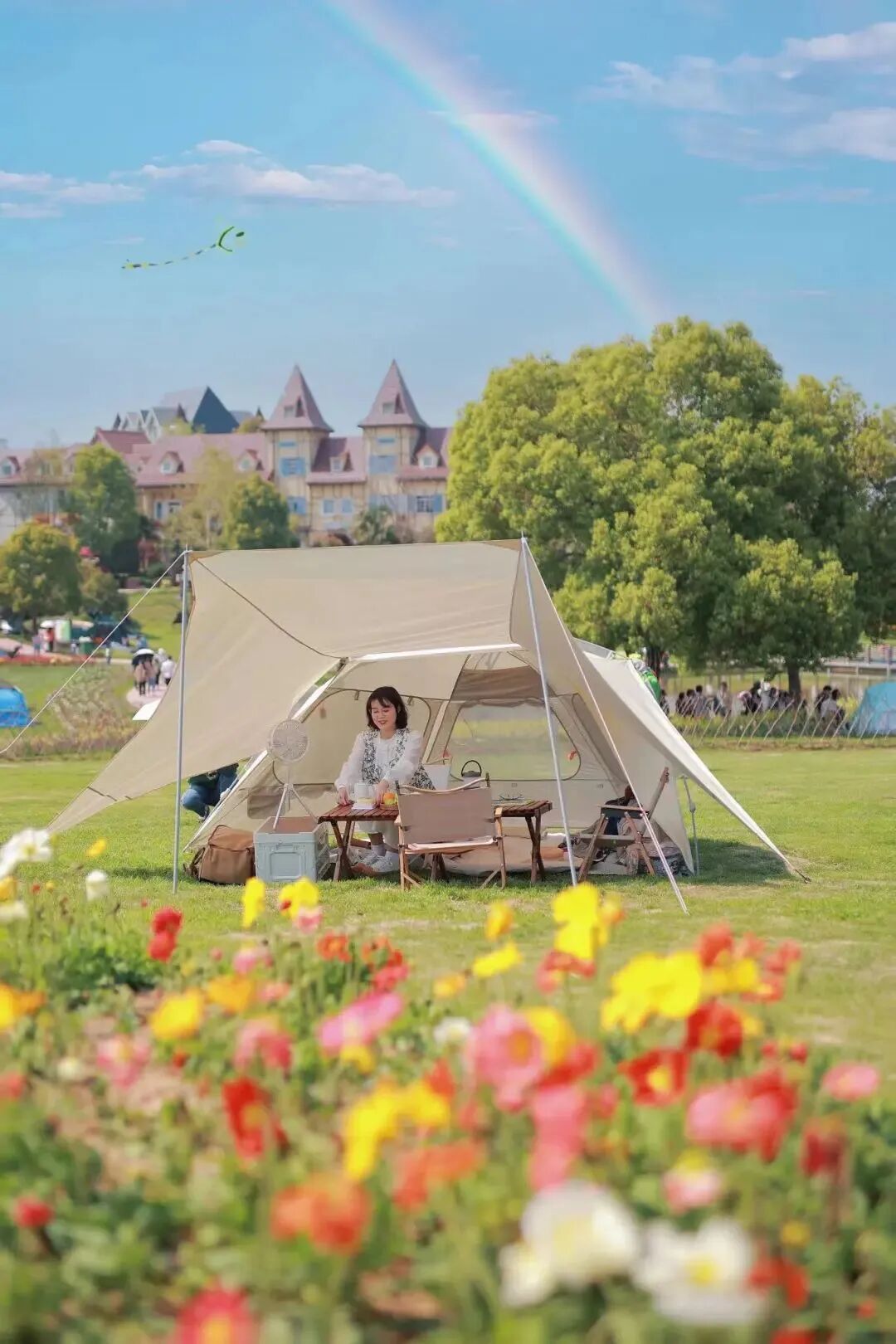 武汉花博汇坐拥大片花海和草坪,每到周末节假日,一顶顶帐篷、天幕在草坪“生长”,微风拂过,非常惬意。园区内还有特色露营民宿可体验。