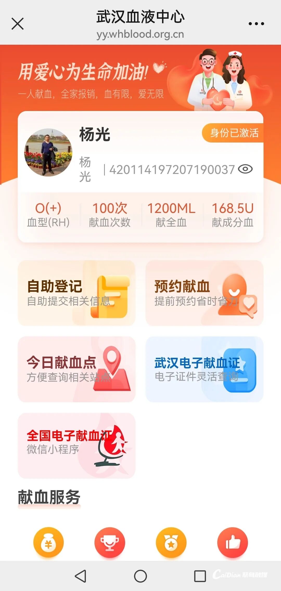 18年间,蔡甸区马号社区党委书记杨光累计无偿献血100次,捐献全血1200毫升以及156.5个治疗剂量的血小板。从退伍军人到基层社区工作者,他始终以身作则,用实际行动践行社会责任,并带动社区居民共同加入公益行列。
