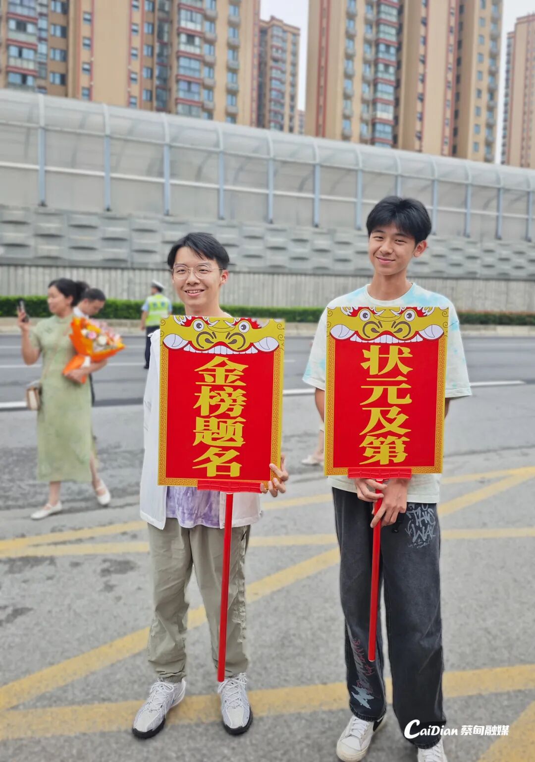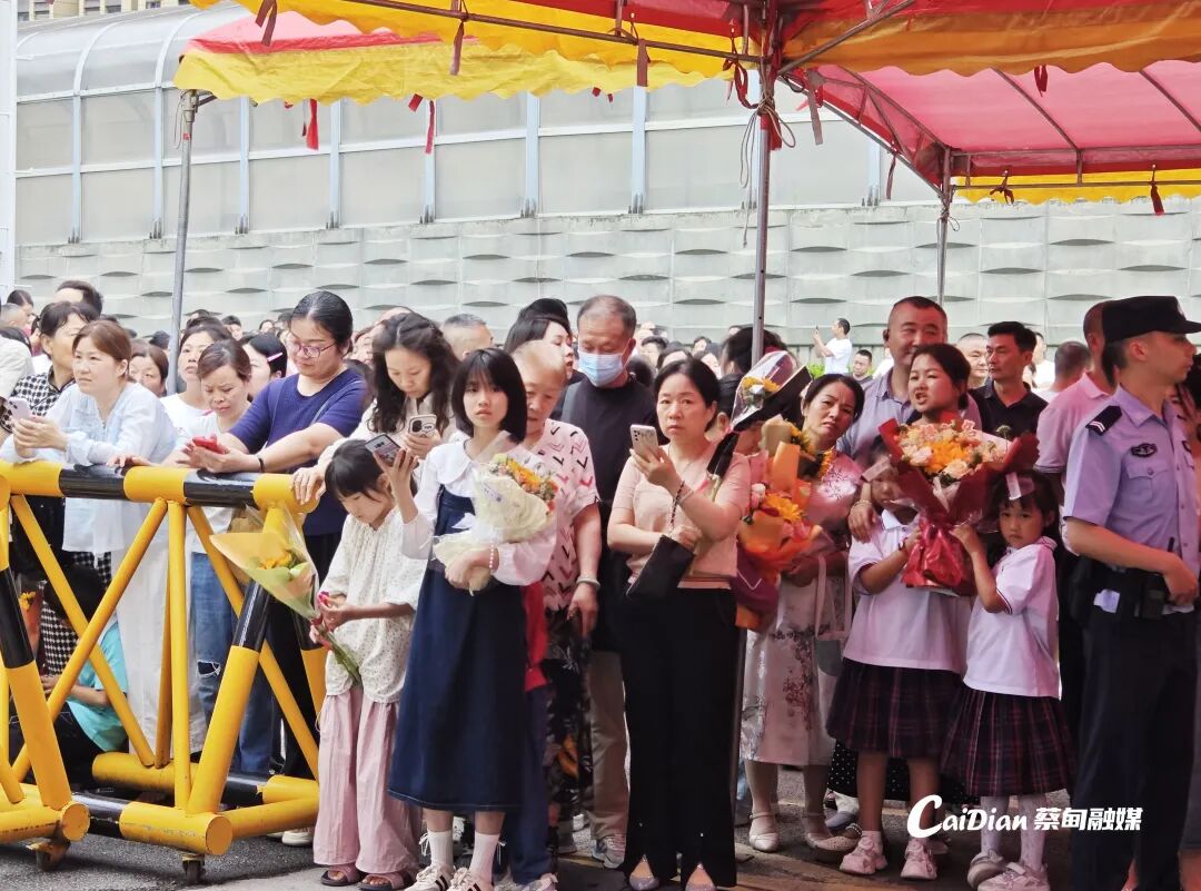 考场外的“送考天团”同样沉浸在喜悦之中。家长彭女士感慨道:“每天五点起床做早餐,晚上十点在校门口等她,这些日子终于熬过来了。”两位手举鲤鱼灯的家长笑容满面地说道:“鲤鱼又寓意鱼跃龙门,就盼着孩子一出来看到我们能开开心心。”人群中,还有高二的学弟高举着“金榜题名、状元及第”的应援牌,为学长学姐送上真挚的祝福。
