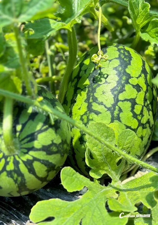 一个个饱满的西甜瓜长势喜人