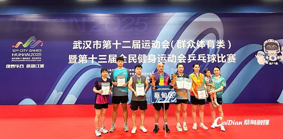 在刚刚落幕的武汉市第十二届运动会(群众体育类)乒乓球比赛中,蔡甸区代表队表现出色,勇夺三金二银一铜,更以一枚极具分量的男子青年组团体金牌,打破中心城区强队长期霸榜的格局,创造蔡甸区球队,乃至远城区球队历史最好成绩,闪耀江城乒坛!