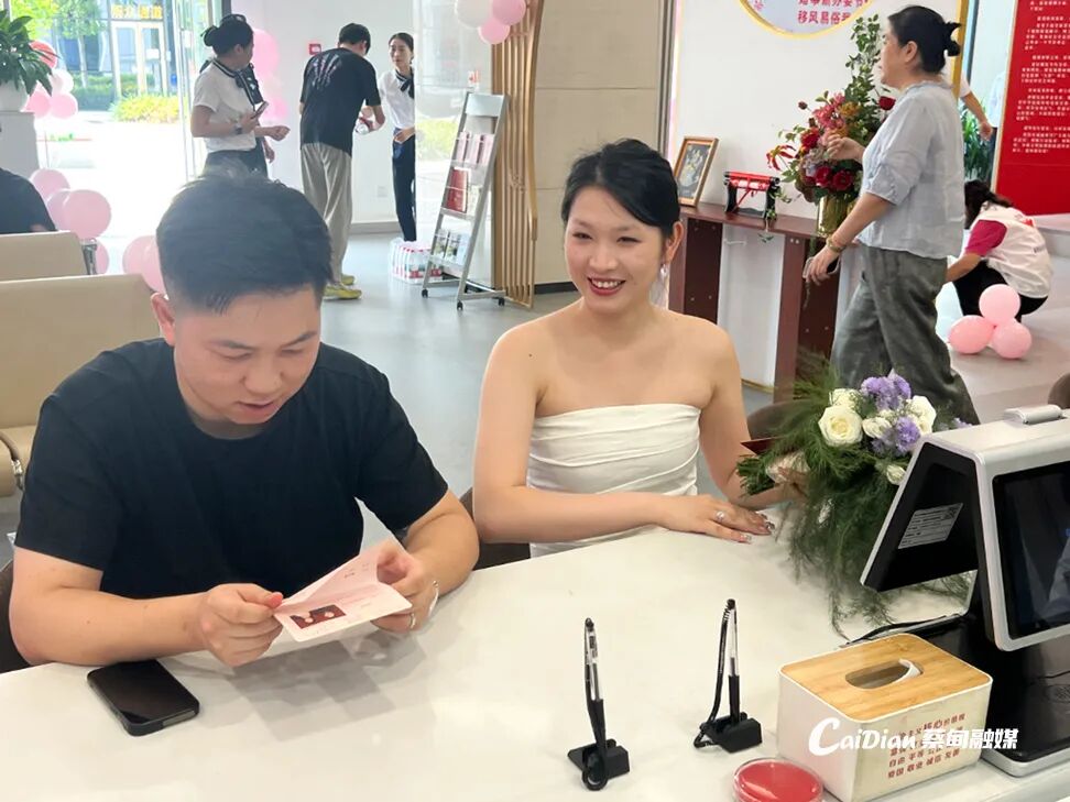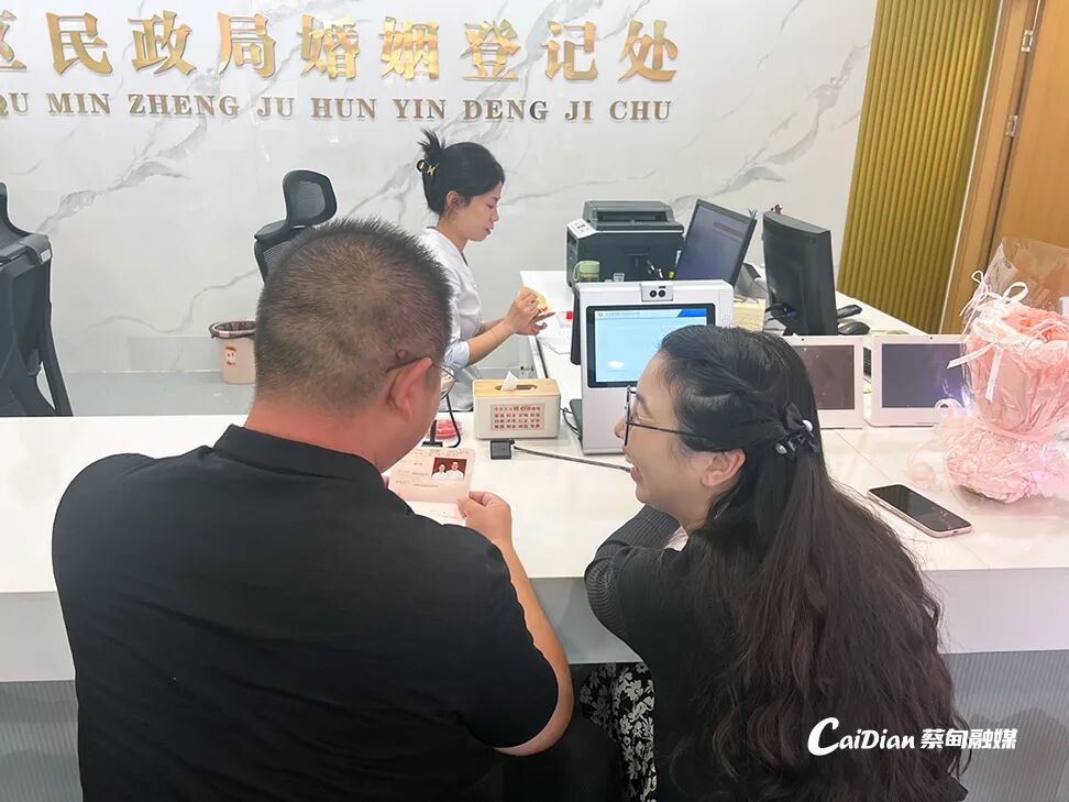 七夕当天,蔡甸区民政局婚姻登记处已有近60对新人办理婚姻登记,人数较平日明显增加。婚姻登记处工作人员李永超介绍,七夕寄托着人们对美好爱情的向往,许多新人选择此日登记,希望以传统浪漫滋养婚姻,让每年的七夕既是情人节,也是结婚纪念日,使婚姻更有“根”。