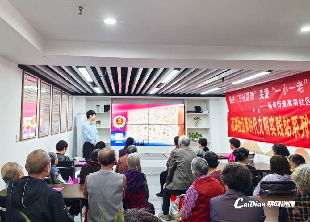 社区积极拓展宣讲阵地、创新传播形式。依托“高湖遇知音”视频号,策划推出系列原创短视频,以通俗易懂的镜头语言解读理论政策,让党的声音以更鲜活的方式融入居民日常生活。同时,打造“润物有声”微阵地,在党群服务中心、江城蜂巢驿站、老年人服务中心等场所,通过循环播放视频、开展集中宣讲等方式,将党的政策覆盖至户外工作者、老年人等群体,增强群众的向心力和认同感。