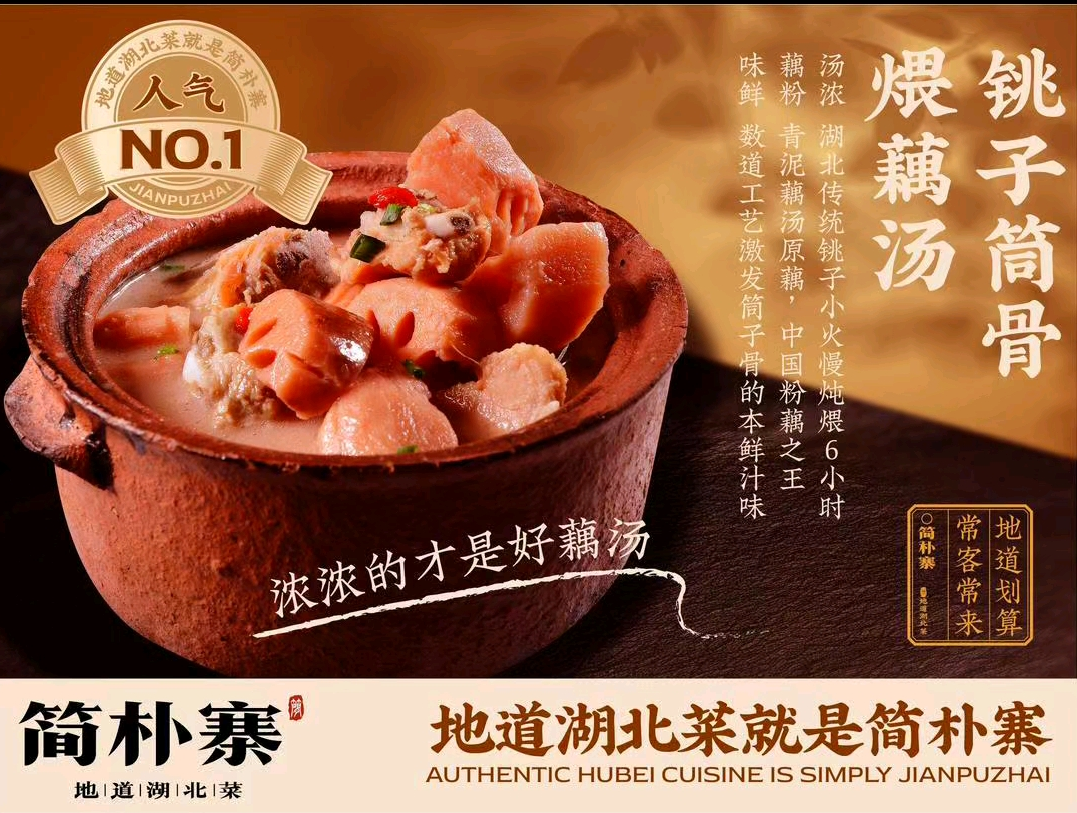 扎根蔡甸莲花湖大道的简朴寨,选用本地九孔藕搭配新鲜排骨,遵循老武汉煨汤的讲究——用传统砂锅铫子加文火慢煨数小时,不急躁、不催火,让食材的鲜味在慢炖中充分释放。炖好的藕块绵密粉糯,吸饱醇厚肉香,排骨软烂脱骨,汤汁清甜透亮。