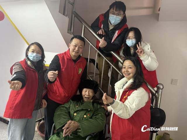 新春将至,暖意先行。2月14日,蔡甸区蔡甸街道龚家岭社区志愿队来到百岁老党员张业荣家中,为老人圆上“一件新军大衣”的心愿。