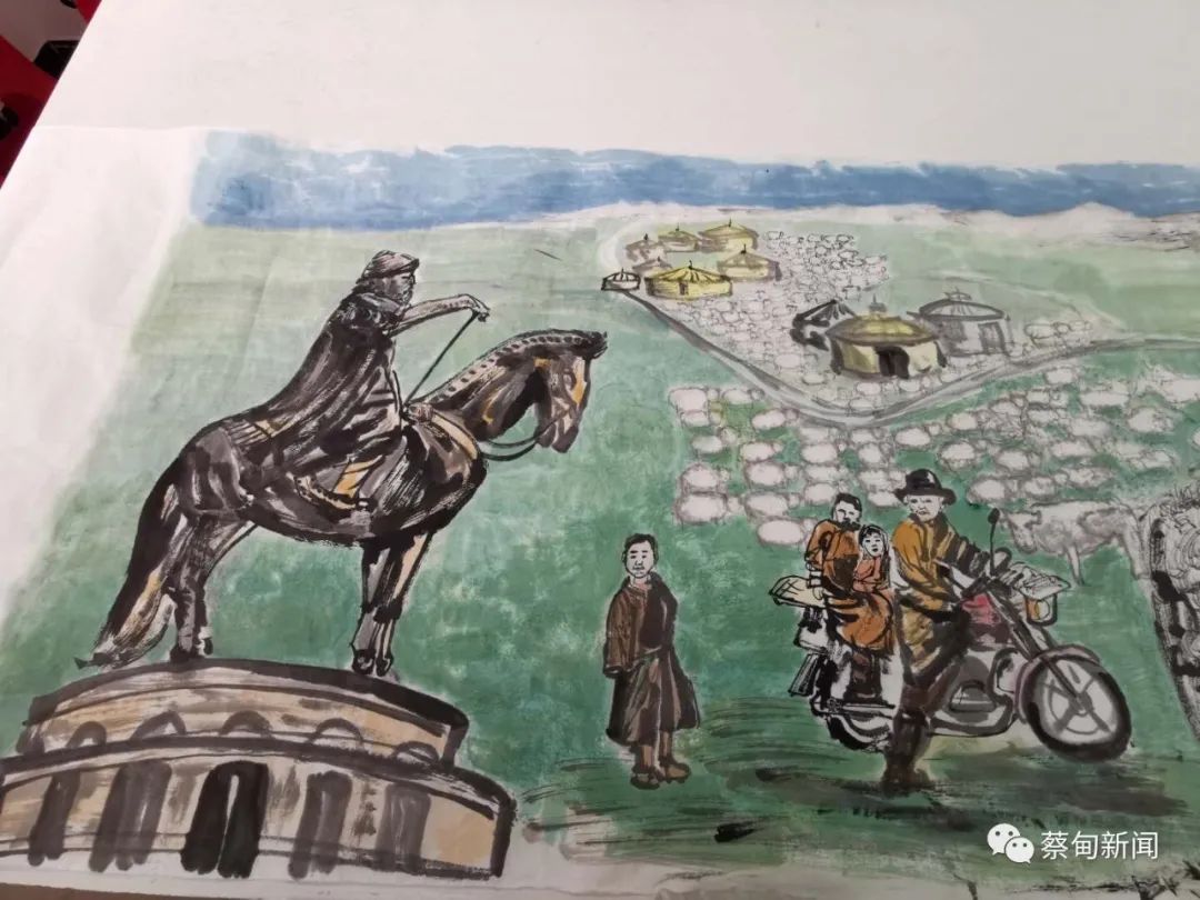 一幅融合蒙古与武汉、蔡甸风情的长卷国画
