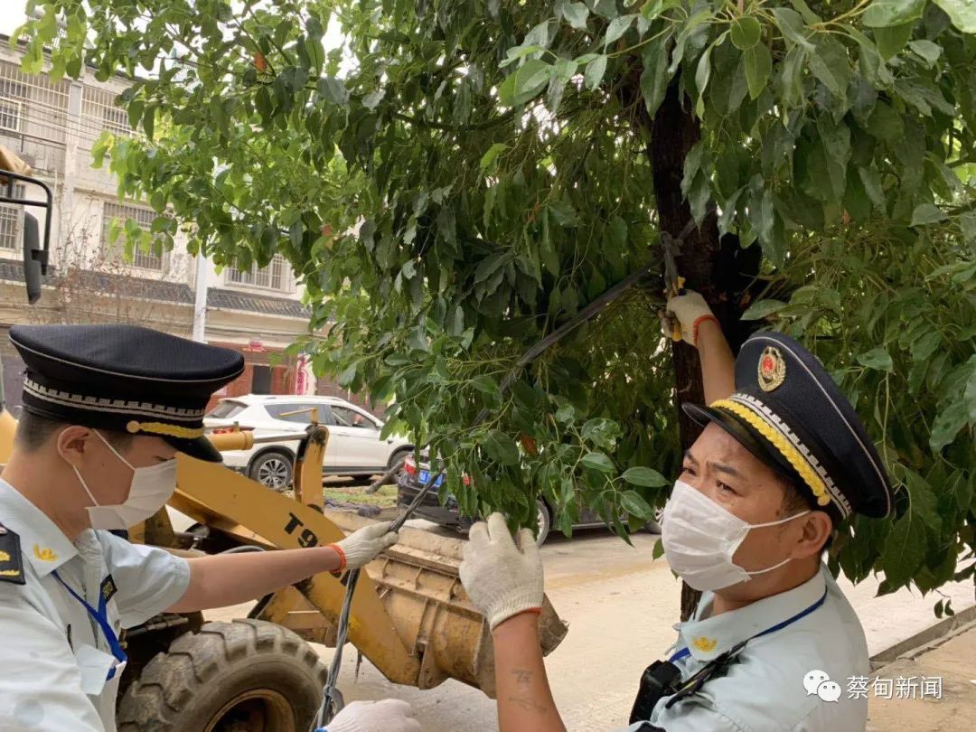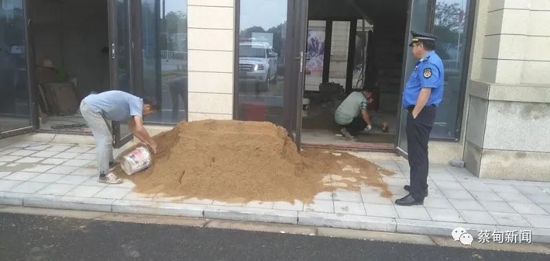 9月15日上午,天空中飘着阵阵秋雨。蔡甸区城管执法六队队员们6点多钟就走上街头,顶风冒雨开展以“城市是我家,一起维护他”为主题的“门前三包”集中执法行动。