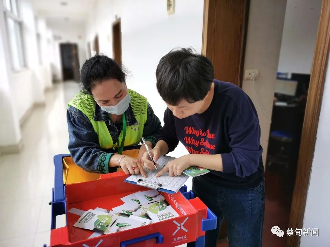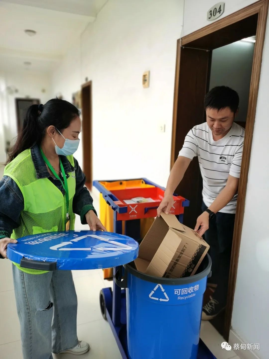 “您好,请将废旧文稿、报纸、杂志放入可回收物收集箱,请将锂电池放入有害垃圾收集盒中。”“5号电池等干电池都是无汞或低汞电池,属于其他垃圾,请您牢记。”9月25日,生活垃圾分类督导员推着分类收集车,巡访蔡甸街办事处大楼内每层楼的每间办公室,一边宣传生活垃圾分类知识,一边分类收集有害垃圾和可回收物。
