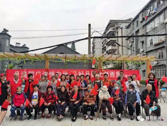 最后,居民们挥舞着国旗、齐唱着《我和我的祖国》合影留念,向祖国送上美好的祝福。