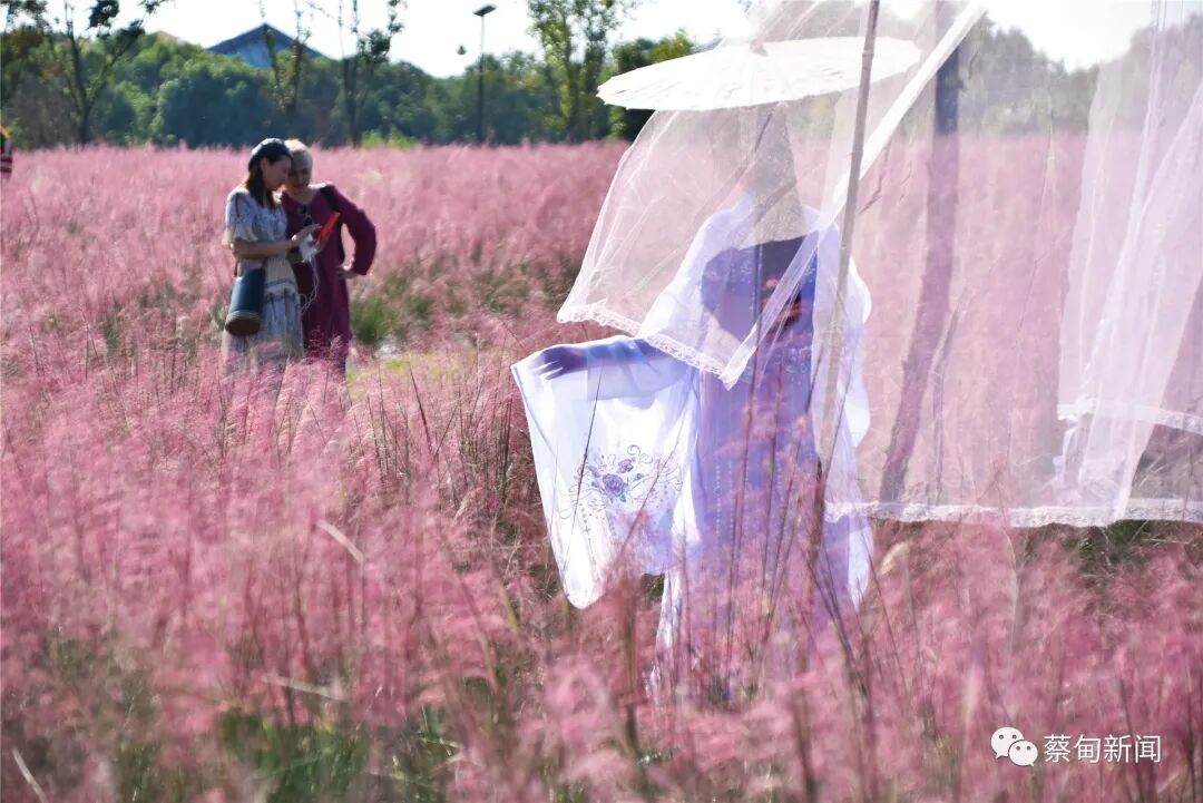 网红粉黛乱子草花海呈现出浩瀚如烟的粉红海洋