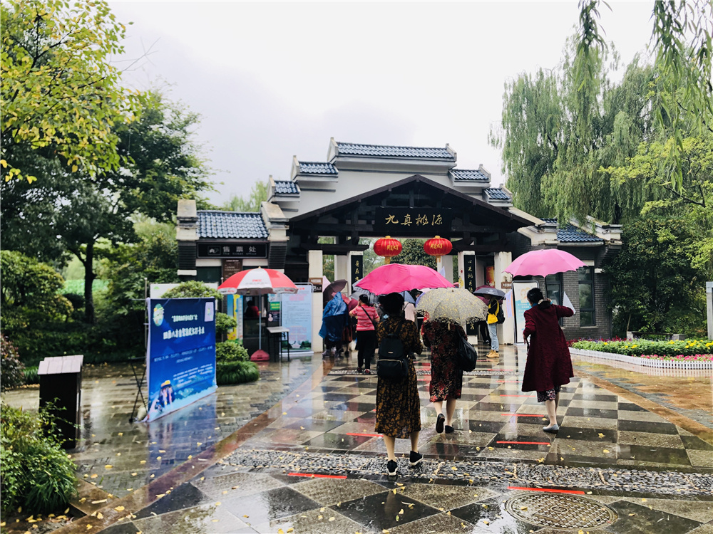 据悉,九真桃源位于武汉市蔡甸区永安街,地处九真山国家森林公园,晴峦耸秀,绿水径流,道教文化深厚,隐逸文化广传。景区内溪湾柳间栽桃,屋绕梅余种竹,自成天然之趣,巧假人事之工。小桥流水,鸟语花香,亭出石刻,幽径斜扬,既有良田美池桑竹之属,亦有黄发垂髫怡然自乐之态,恍若世外桃源。正是“花落呼童,竹深留客,似多幽趣,更入情深”,已成为都市人们回归自然山水田园,体验隐逸生活乐趣的圣地。