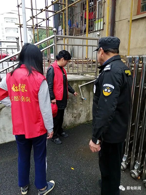 “前几天我们巡逻的时候,在小区后门附近,就发现一个安全隐患。”余利华告诉记者,最近机关小区正在进行老旧小区改造工程,楼房外墙搭脚手架钢管刚好延伸在一个水龙头上方,如果不加注意,在此用水的人会撞到头部。队员赶紧叫来保安,提醒其暂时封掉水龙头,以免造成事故。