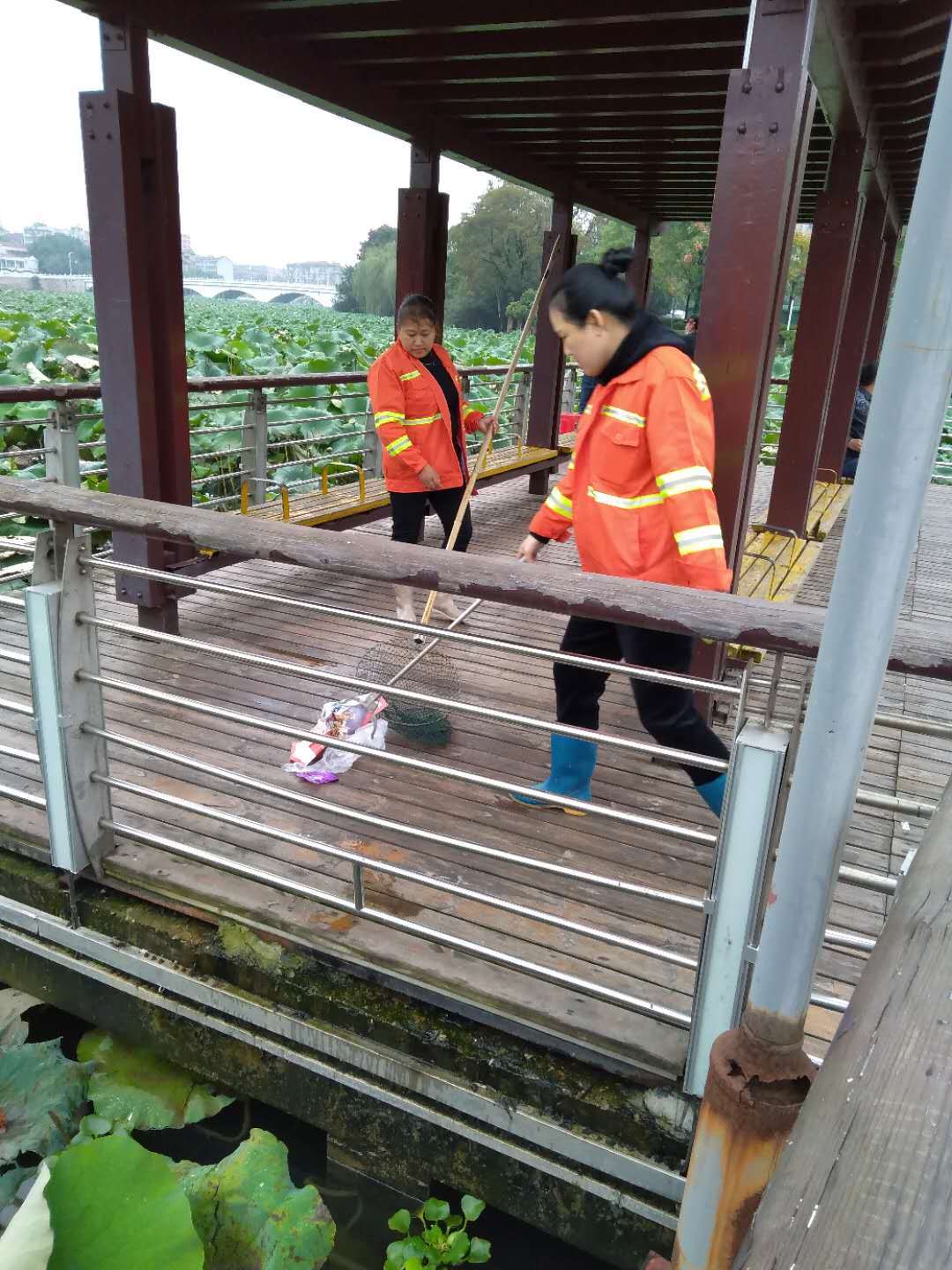 以蔡甸城关莲花湖区域周边环境卫生为重点,节前,环卫中心组织专班对1-7号湖进行了环境卫生大排查,对水域岸坡的杂物杂草、乱堆乱放进行了集中清理,以实现水边无污染物。节日期间,落实湖面及沿湖巡查工作机制,加大作业力度,确保无卫生死角、无暴露垃圾,生活垃圾日产日清。同时进一步规范环卫作业方式,及时清理淤泥、杂物,在岸边增设垃圾桶,减少乱扔垃圾的现象,并及时对湖面水生植物、水面漂浮物、排水口污染物进行全面打捞,用小型清洗车清洗沿湖道路积尘,及时铲运淤泥,保持干净整洁。