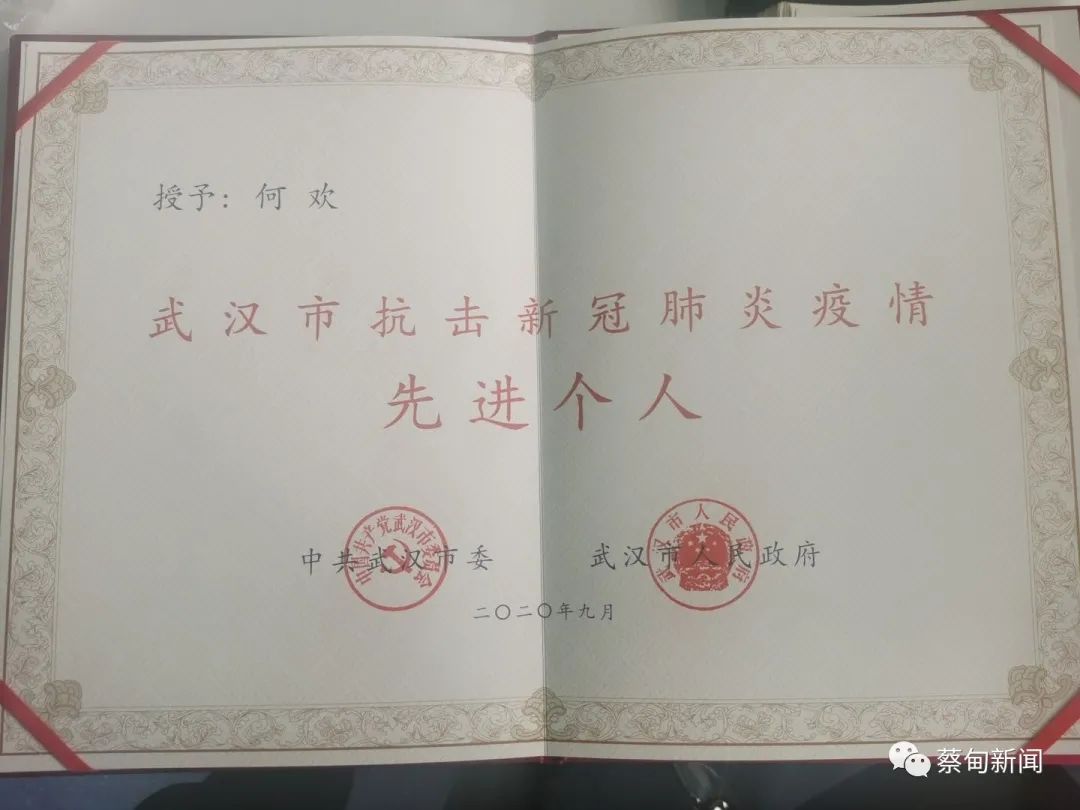 记者何欢荣获“武汉市抗击新冠肺炎疫情先进个人”称号