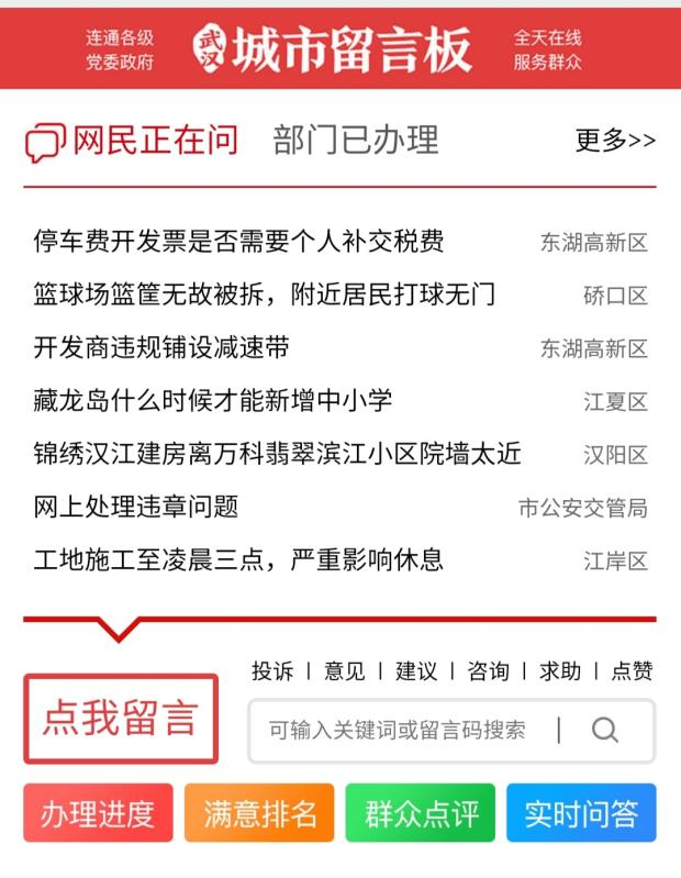 城市留言板,投诉、建议、讨论、咨询、求助、点赞,您留言,马上办。