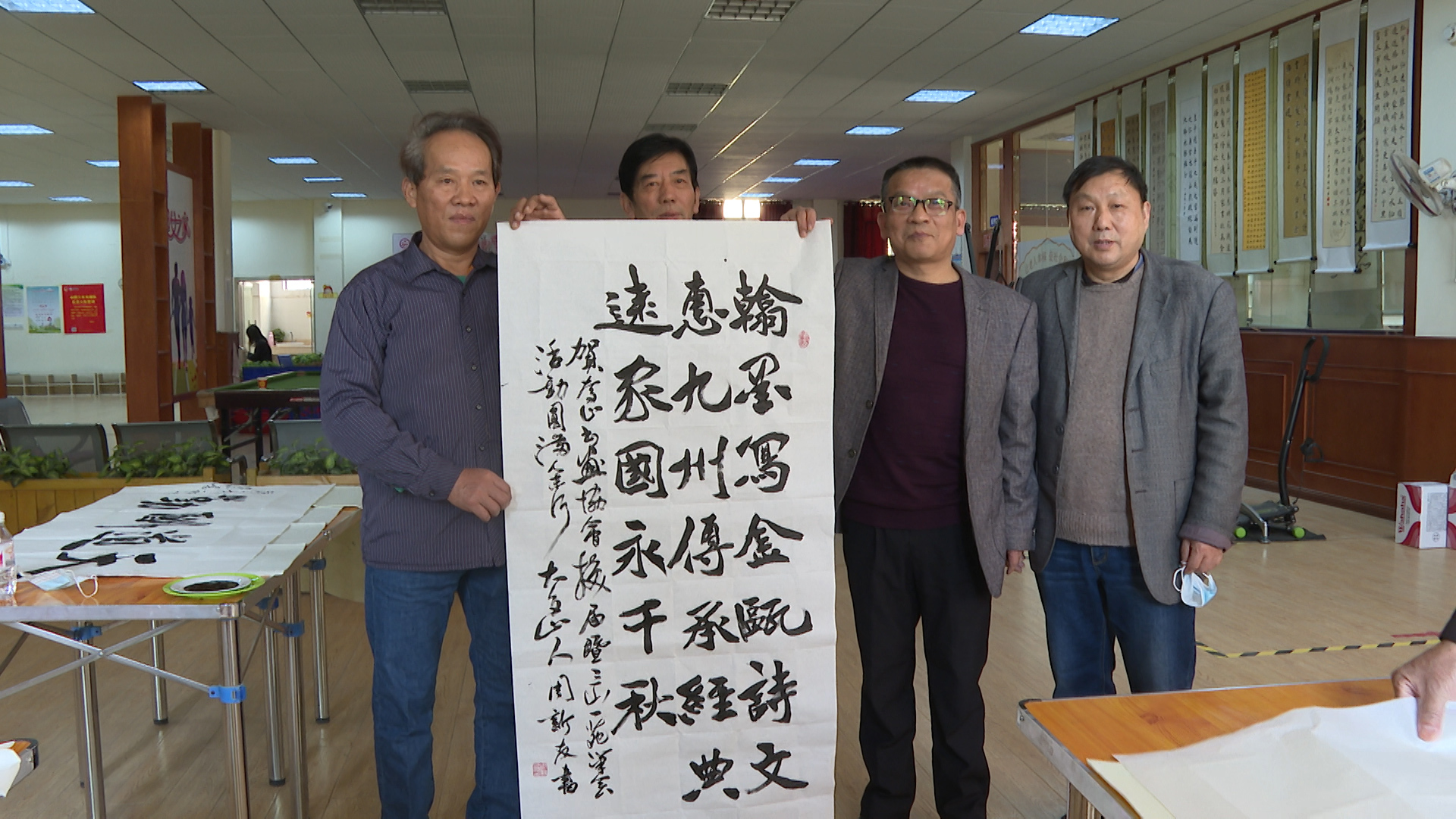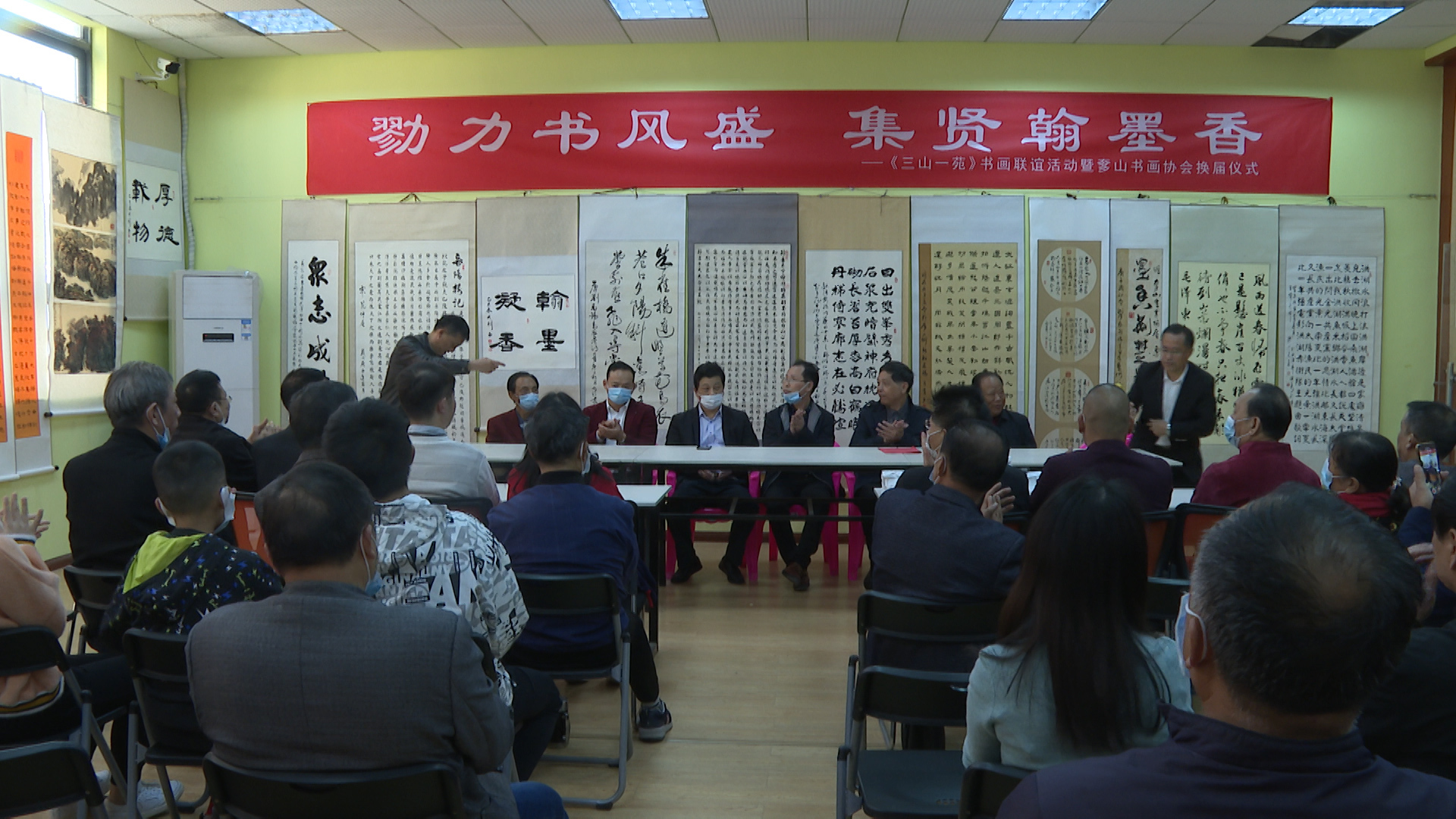 换届仪式结束后,会员们现场挥毫泼墨、切磋交流,并指导当地的年轻爱好者们学习书画艺术,共创作了70余幅书画作品,以恢弘的气势和雅致的艺术形式,表达了对生活的热爱。