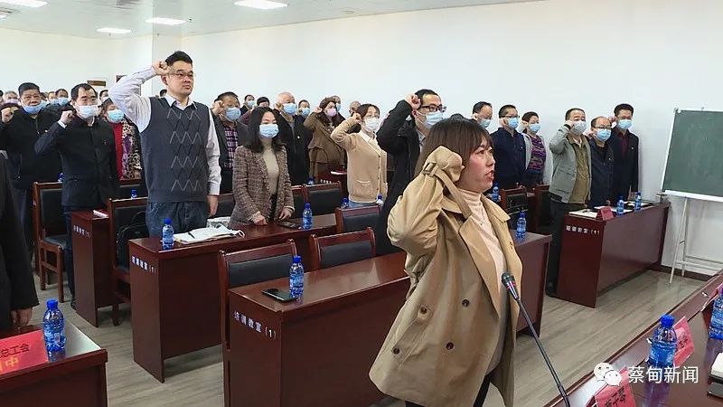 会上,全体参会党员佩戴党徽,奏唱国歌、重温入党誓词。