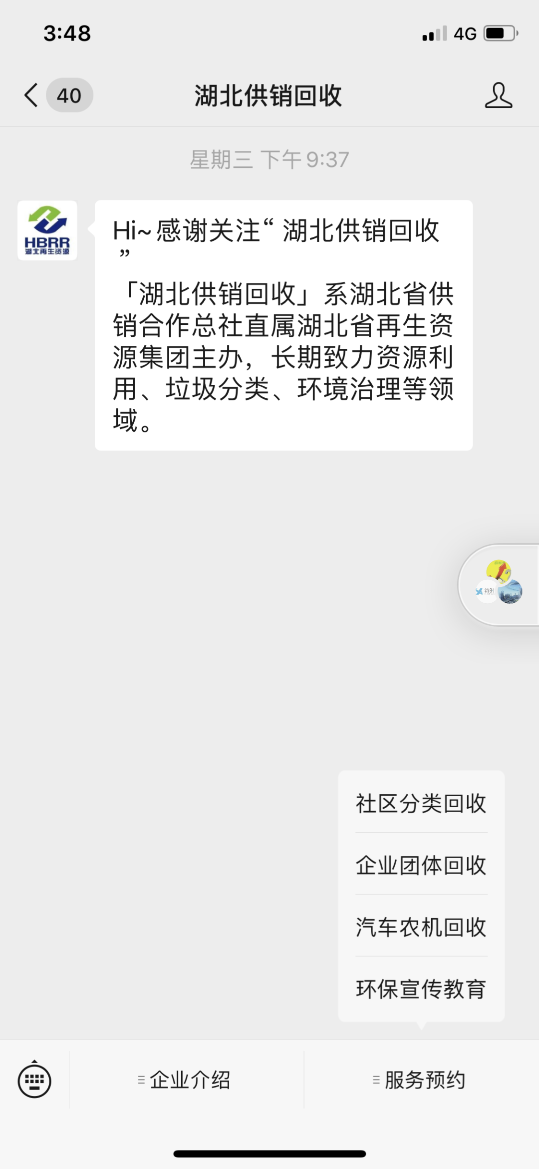 记者对“湖北供销回收”体验了一番,关注该微信公众号后,依次进入“服务预约”——“社区分类回收”——“武汉地区”,根据界面操作提示,可对电视、空调、洗衣机、冰箱、电脑、油烟机、消毒柜、热水器、烘干机、小家电等进行回收预约登记,上门时间还可自定。
