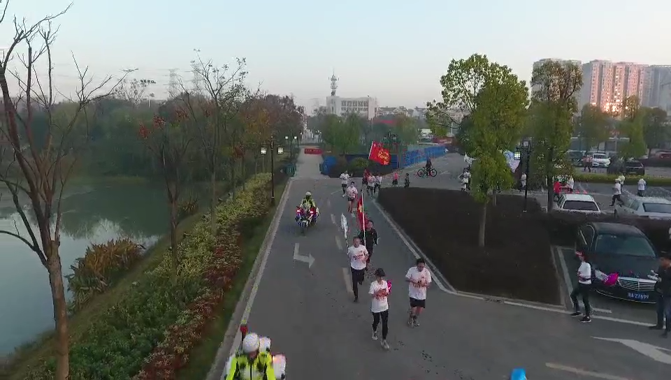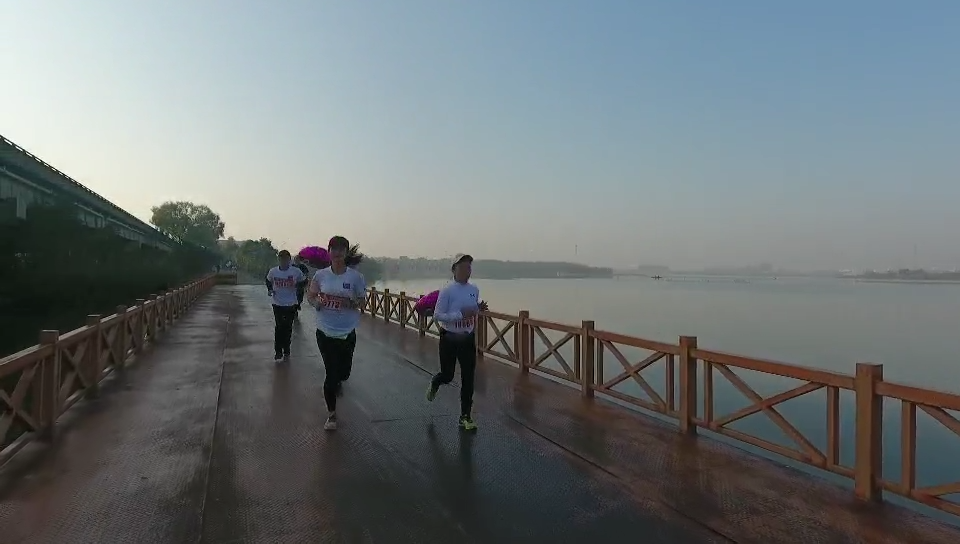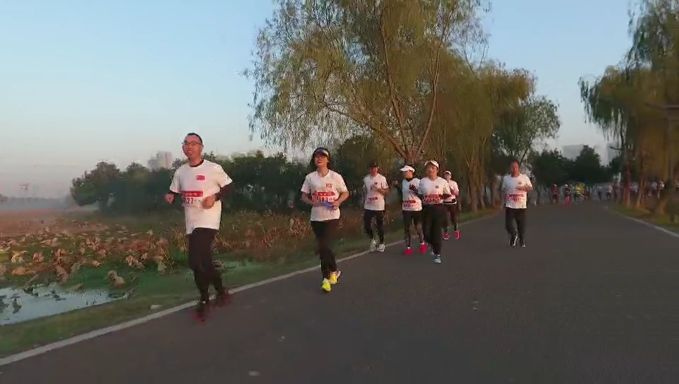 跑友们慢跑在知音故里美丽的后官湖畔
