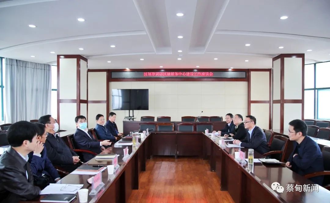 在区融媒体中心全媒体指挥调度中心,郝胜勇观看了区融媒体中心宣传片,详细听取了指挥调度中心系统平台功能介绍,并与外采记者视频连线。随后,郝胜勇主持召开座谈会议。