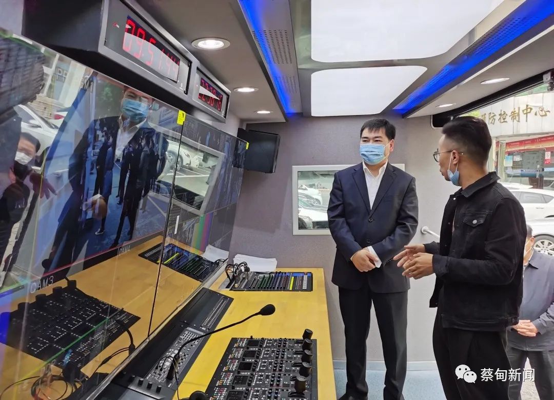 郝胜勇参观了区融媒体中心全新投入的全媒体5G高清直播车,查看了编辑室、演播室、播出机房等功能室。