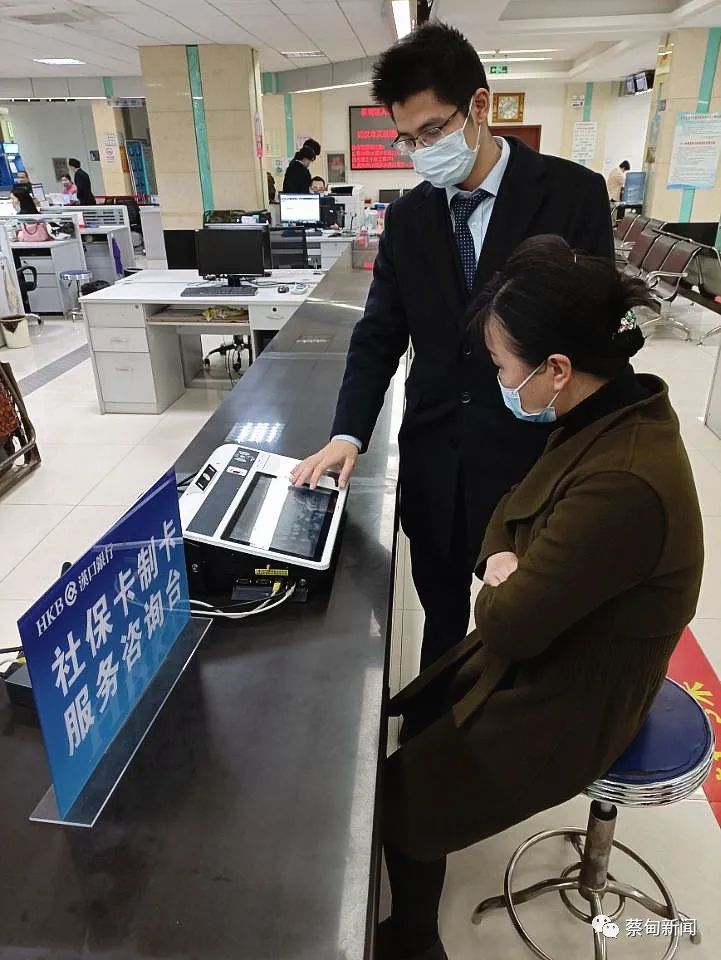 日前,蔡甸区人社局协调中国邮政银行蔡甸支行、汉口银行蔡甸支行,增设“即时”制卡设备,蔡甸区政务服务中心社保卡工作人员把相关信息上传完成,指引群众去银行设备机办理社保卡相关业务,市民大呼方便快捷。