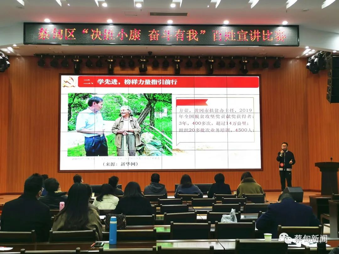 据了解,此次比赛从宣讲内容、语言表达、形象风度、宣讲效果等四个方面进行评分。宣讲围绕主题,以深化爱国主义教育为主要载体,充分展示各单位“决胜全面小康,决战脱贫攻坚”成效和亮点,展现新时代广大党员干部职工和人民群众的良好精神风貌,为收官之年进一步巩固蔡甸区脱贫攻坚质效,决战决胜脱贫攻坚凝聚力量、营造氛围。