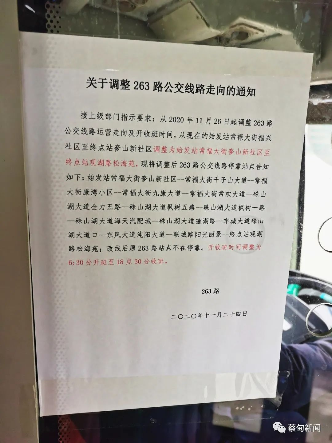 目前,263路公交线路首末站开收班时间为早6点30分至晚6点30分。