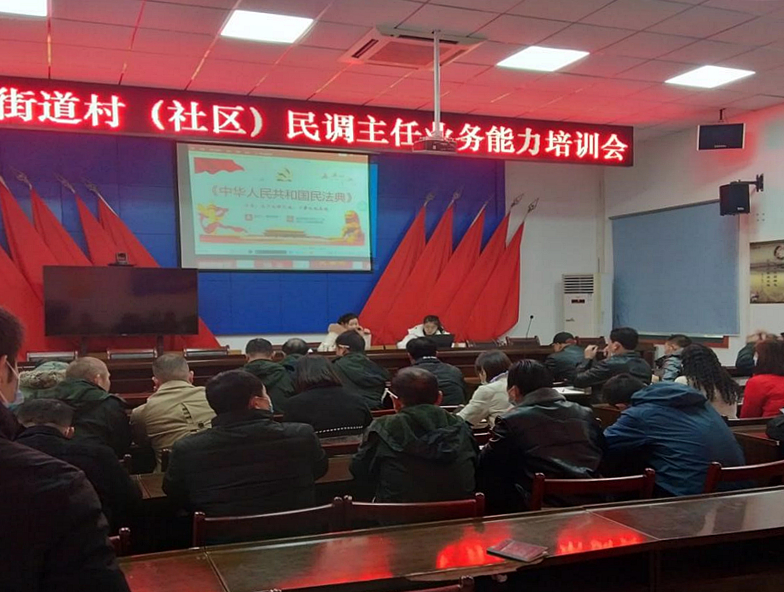 为深入学习贯彻《民法典》《中华人民调解法》《武汉市多元化解纠纷促进条例》,按照湖北省普法办《关于组织开展民法典主题宣传活动的通知》要求,抓好“十四五”时期普法重点工作,11月24日上午,蔡甸区张湾街道综治办、司法所组织各村(社区)民调主任在街党校开展工作人员业务能力培训。
