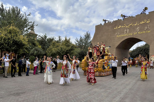 新疆喀什古城景区举行开城仪式,欢迎游客入城游览(9月11日摄)。新华社记者 马锴 摄
