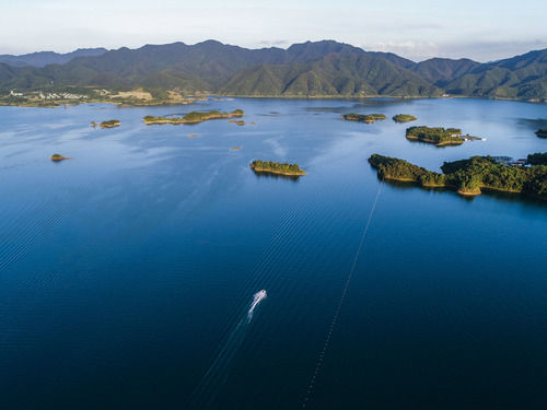 空中俯瞰杭州市淳安县千岛湖(2018年7月18日摄,无人机照片)。新华社记者 徐昱 摄