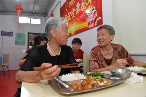 在江西省南昌市东湖区彭家桥街道文教路北社区,老人们在社区的“幸福食堂”吃午饭(7月29日摄)。新华社记者 彭昭之 摄