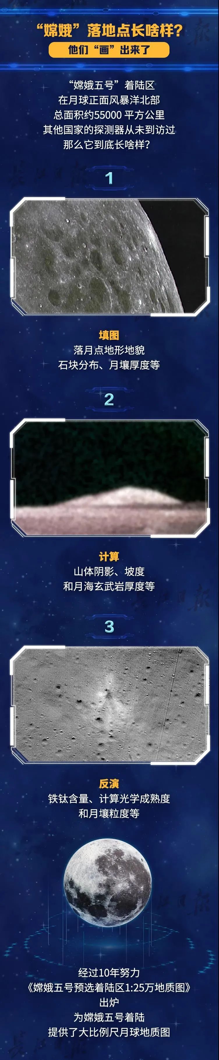 成功着陆后,着陆器在地面控制下,进行了太阳翼和定向天线展开等状态检查与设置工作,将正式开始持续约2天的月面工作,采集月球样品。