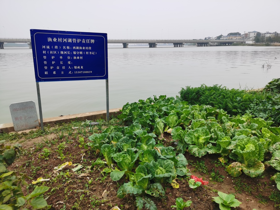 记者沿西湖一路前行,在索河街渔业村邬家咀,2000平方米的菜地赫然出现在西湖绿线范围内,河堤护坡俨然成了“私人菜园”。在一旁,竖立着渔业村河湖管护责任牌。