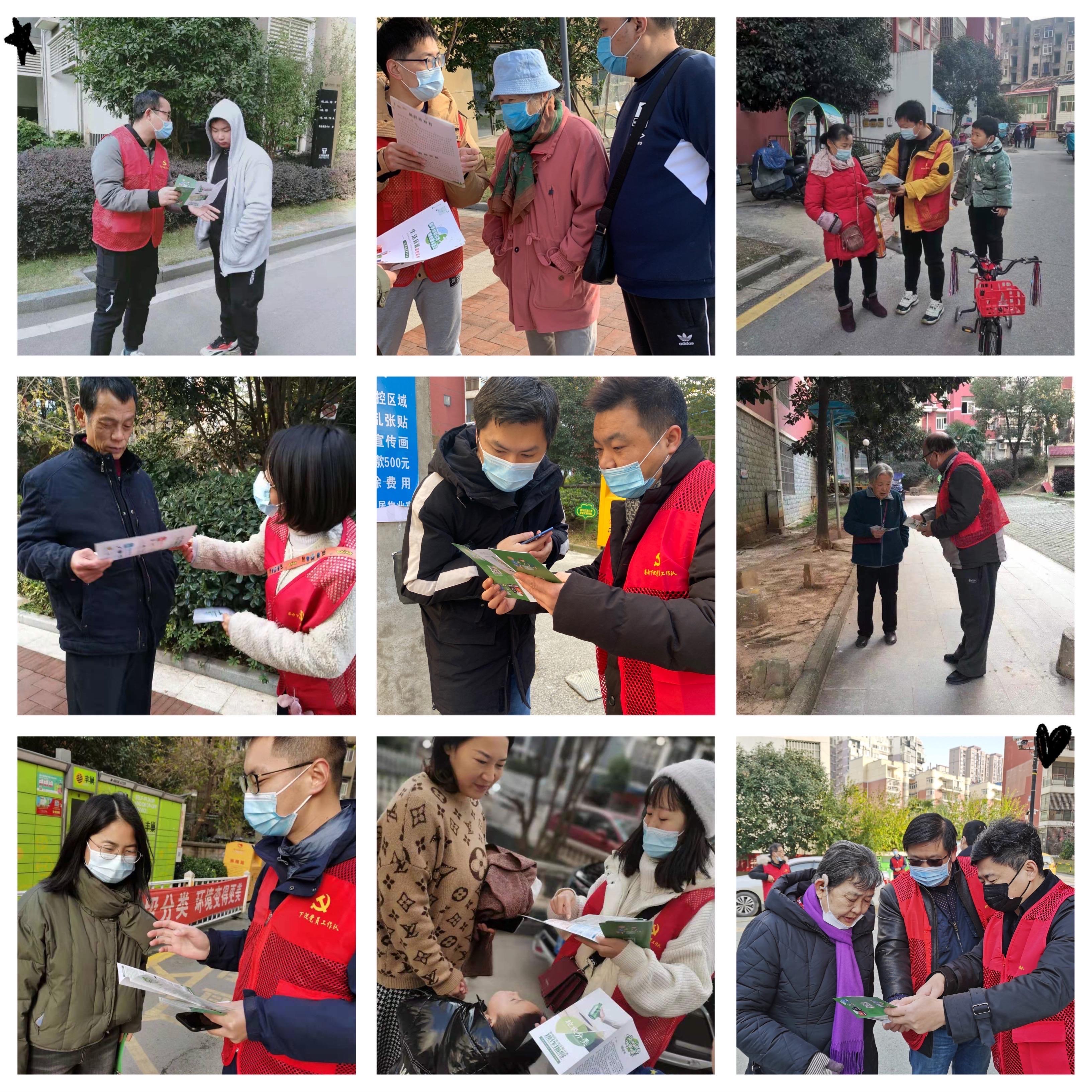 培训结束后,这些党员在社区网格员的带领下认领垃圾分类相关任务,并走进工农社区的天下峰景、荷风雅居、中城上品、未来寓、丽水新城、锦狮丽苑、汉水阳湾小区,博奇路、工农路的沿街商铺及工农社区的便民菜场,共向广大居民发放垃圾分类宣传手册1500余册,详细介绍垃圾分类的重要性、分类方法、资源回收利用、废弃物处置等知识,让商家和居民自觉养成垃圾分类、准确投放的好习惯,实现资源的循环利用,让绿色、低碳、环保理念深入人心。