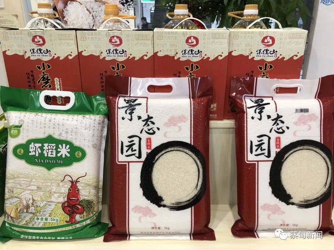 金碾王的豆丝、香满园的系列汤品、景态园的生态大米、侏儒山的各类食用油作为蔡甸地区扶贫特色农产品代表,在馆内重点推介。