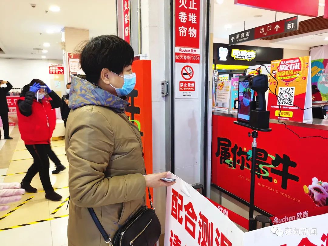 为确保蔡甸区各大商超防控措施落细落实,区商务局要求各大商超企业所有从业人员严格执行扫健康码、测温、佩戴口罩和防护面罩等防控措施,并严格落实环境消杀、定时通风,建立健全员工健康监测机制,切实保障企业员工和顾客生命安全,筑牢疫情安全防线。
