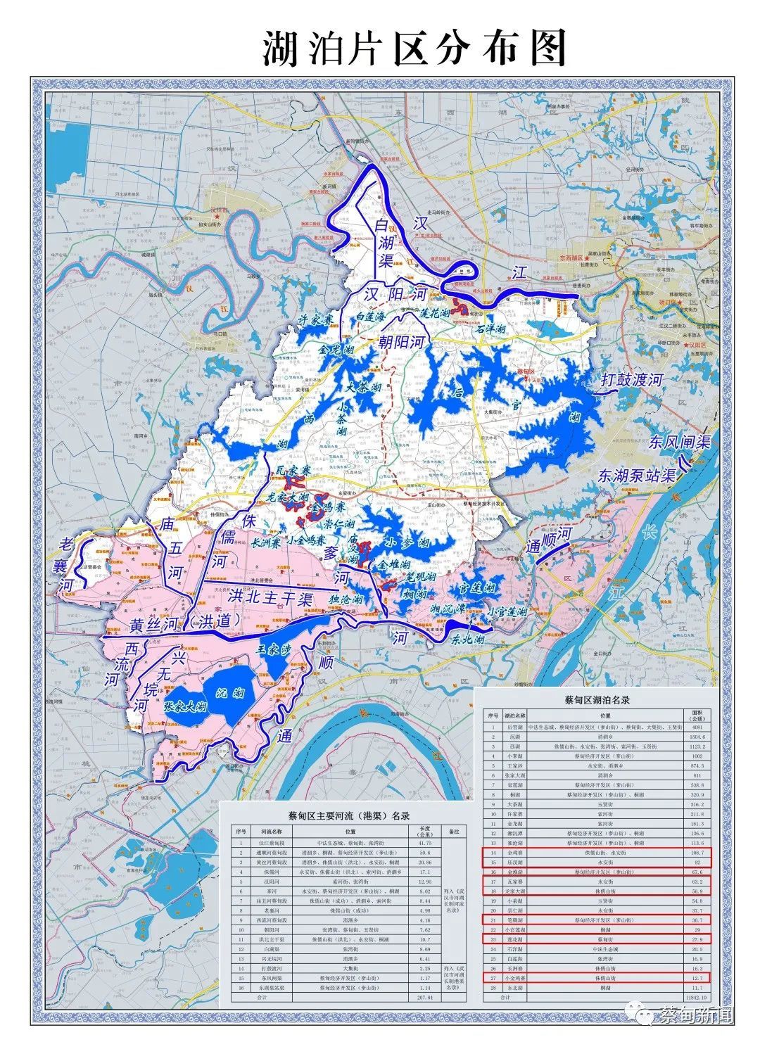 ▲蔡甸湖泊片区分布图