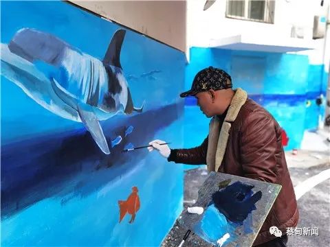 看似简单的墙绘,操作起来并不容易,在刘春洪的努力下,一幅幅以“海洋”为主题的墙体画已基本成型。刘春洪用自己手中的画笔,让冰冷的墙面逐渐生动活泼起来。