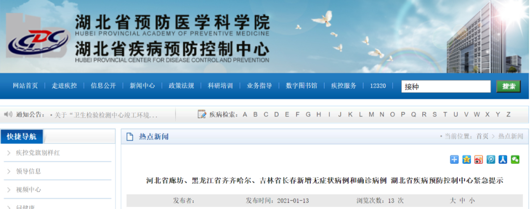 河北省廊坊、黑龙江省齐齐哈尔、吉林省长春新增无症状病例和确诊病例 湖北省疾病预防控制中心紧急提示