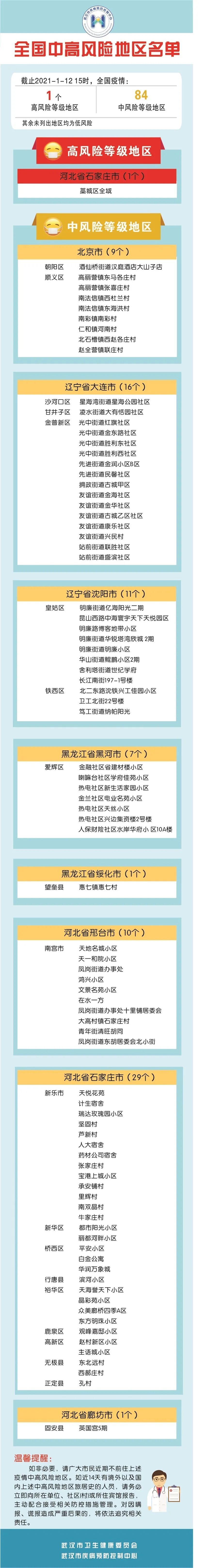 高1中84!最新全国疫情中高风险地区名单(1.12)