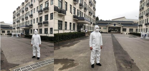 2月7日,野战国防园,这是蔡甸区临时设立的新冠肺炎密切接触者医学观察点之一,中法生态城管委会社会事务处城管查违办公室工作人员韩松正在这里忙碌着。几天前,接到通知要到国防园协助隔离密切接触者,他立刻交接完手上的卡口值守任务,随即奔赴现场投入新的战斗。“马上又要到一批密切接触人员,请第一时间做好车辆对接。”车辆转运、场地消毒、引导入住、管理服务、跟车送患者去医院就诊,是他每天的主要工作。面对既有风险又繁琐的任务,韩松说:“虽然有风险,但是穿上防护服就深深感到身上的责任与使命,隔人不隔爱,如果我们都退缩了,那么只会让被隔离的人更加孤独无助。”
