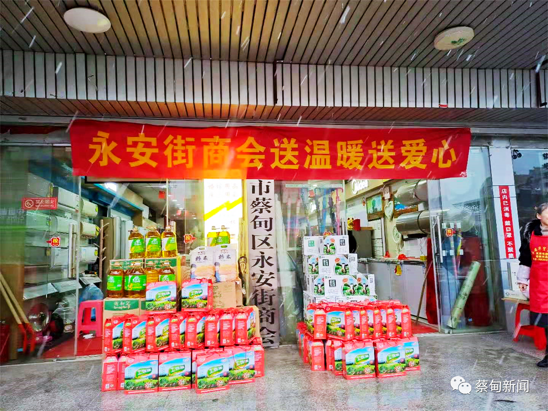 此次慰问物资和资金由华贸商场、厨之道、国盈农业科技、火焰山生态养殖、奥德隆、金土地合作社、绿乐科技、长诚防火门、十里莲华、湖北方行(九真山)等永安街道商会会员单位捐赠。